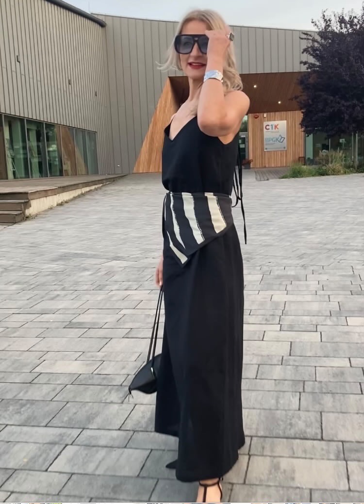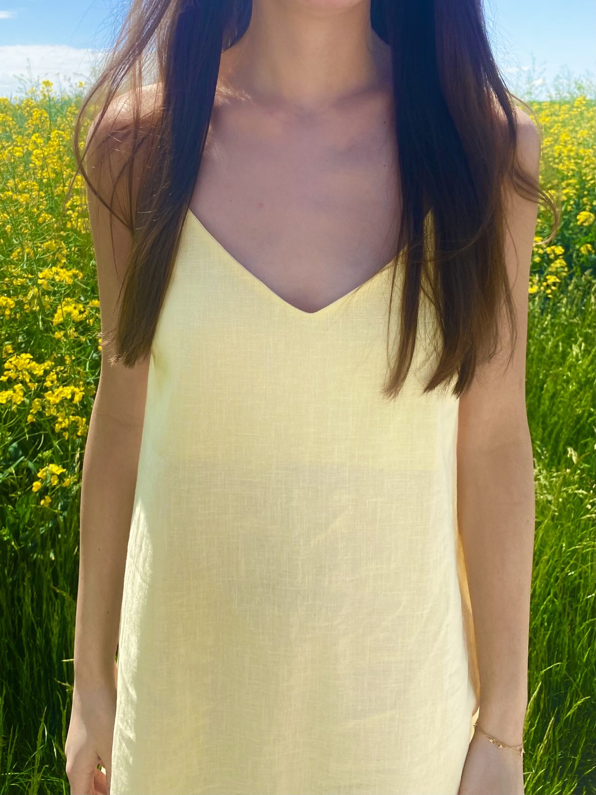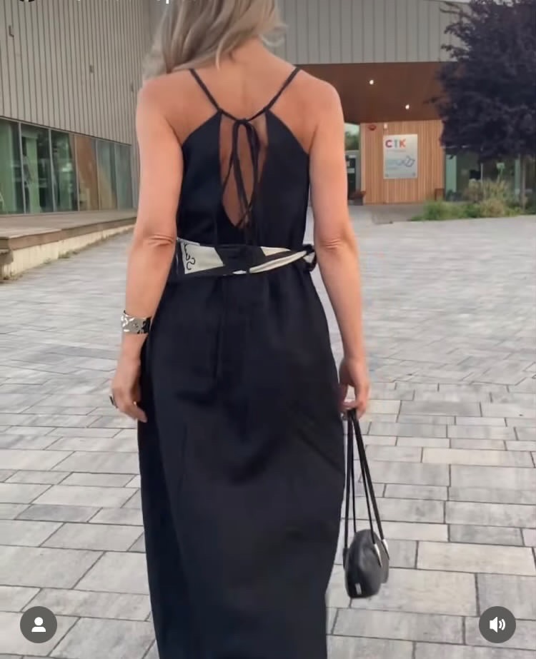 Dekolt wiązany z tyłu na plecach, dzięki czemu możesz sama wyregulować długość ramiączek. Pięknie się układa. Bardzo kobieca. Poczujesz się cudownie , zwiewnie mając na sobie tkaninę o cudownych właściwościach idealną na upalne dni w mieście lub na wakacjach.