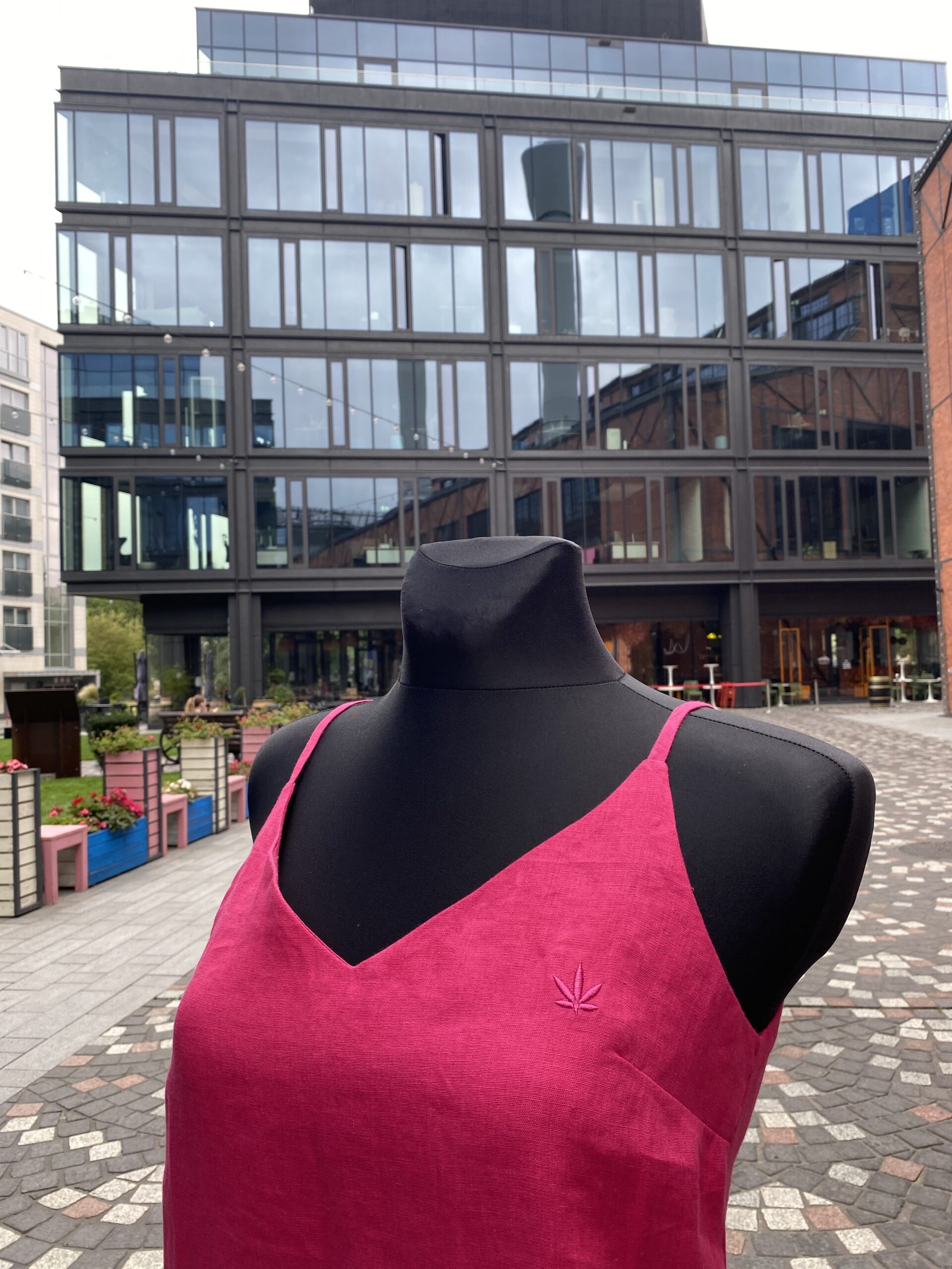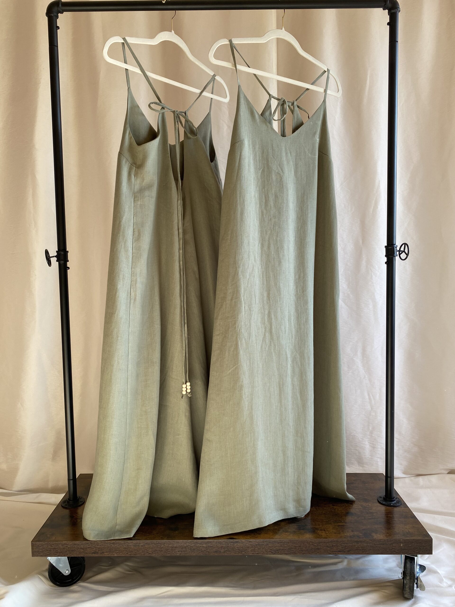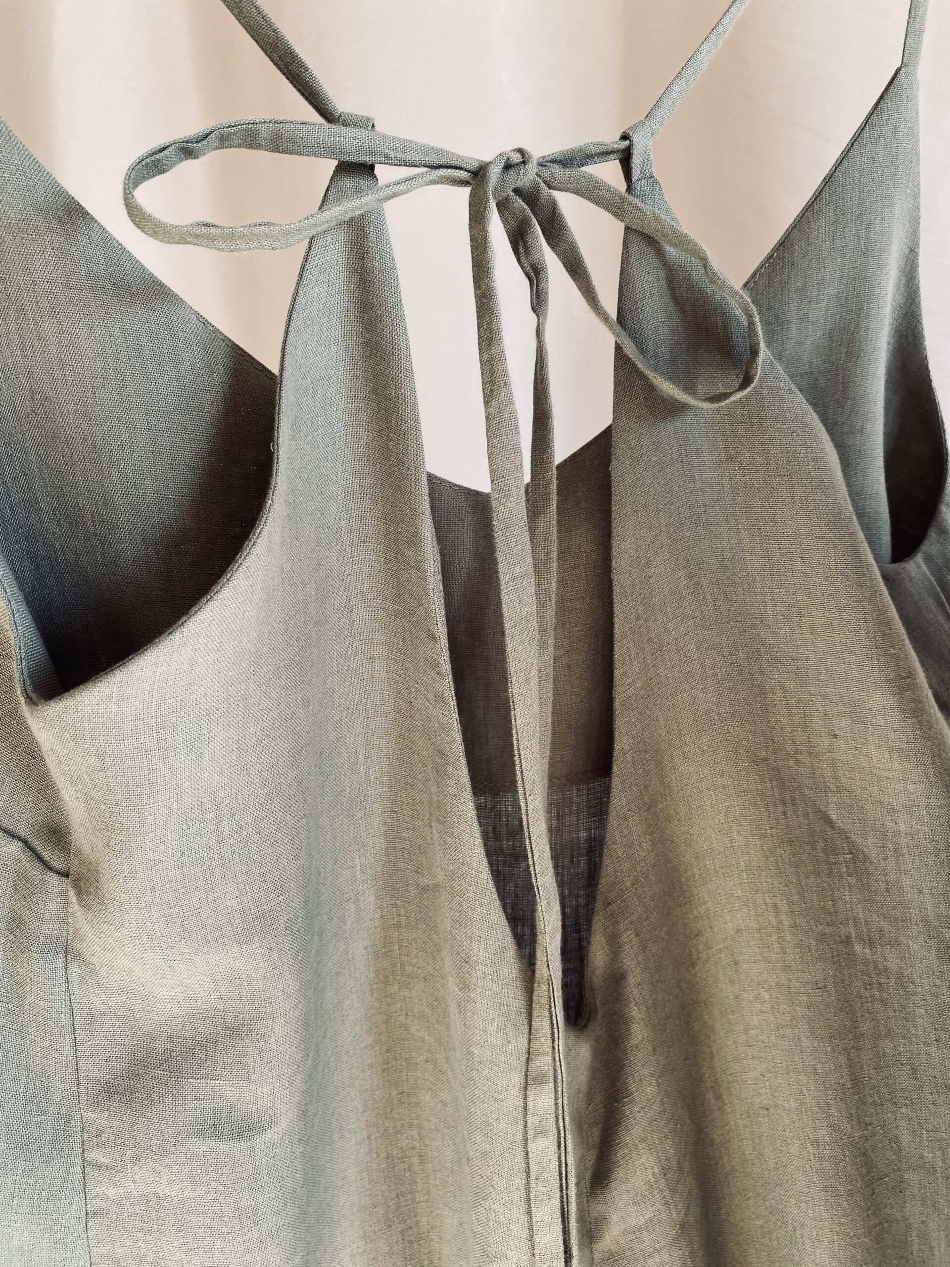 Długa sukienka z konopi na ramiączkach.